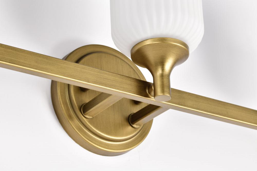 Solara; 4 Light Vanity; Natural Brass Finish; Frosted Ribbed Glass
