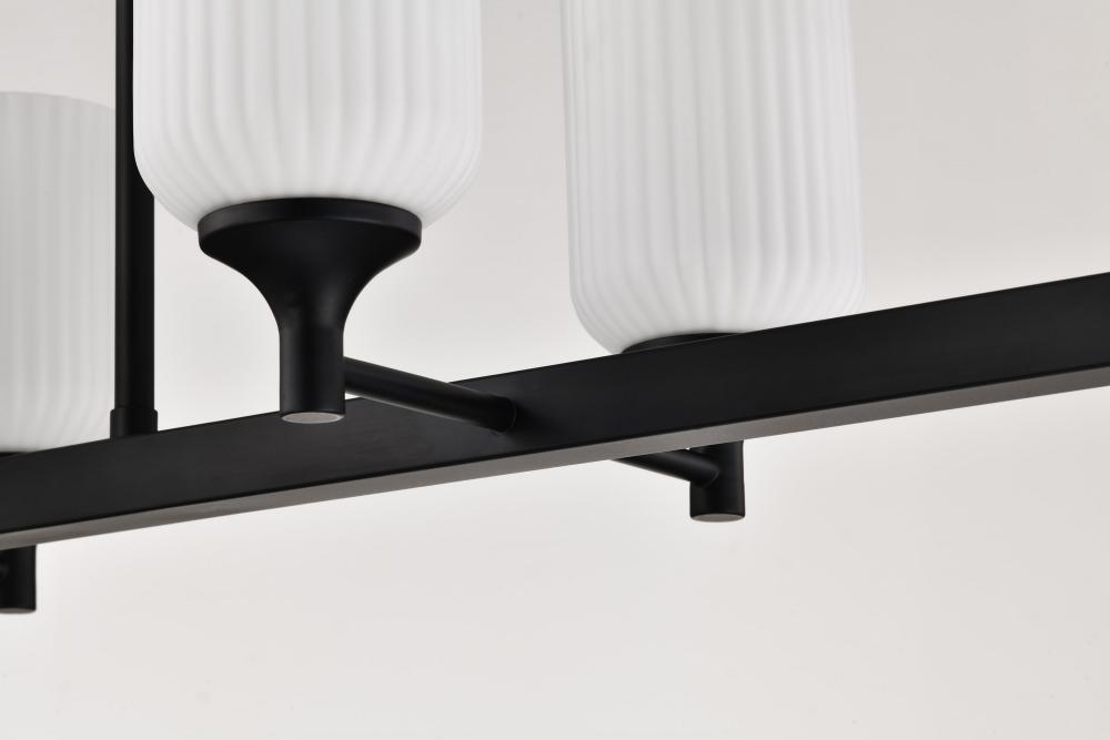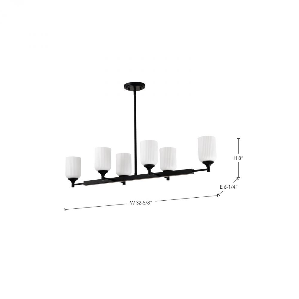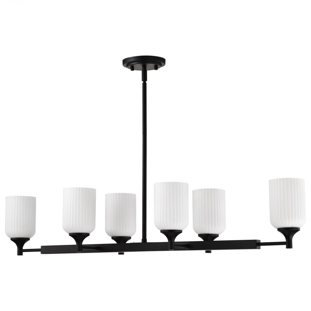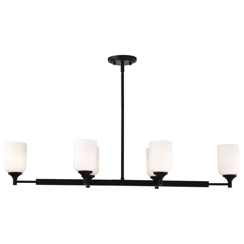 60/8649 - Solara; 6 Light Island Pendant; Matte Black Finish; Frosted Ribbed Glass