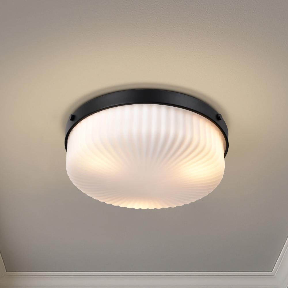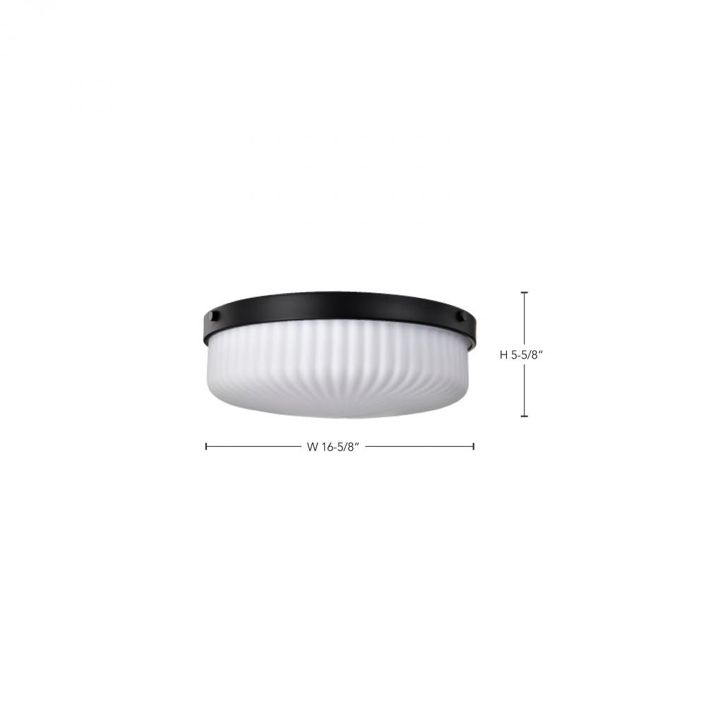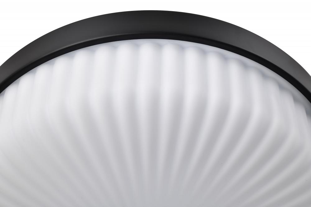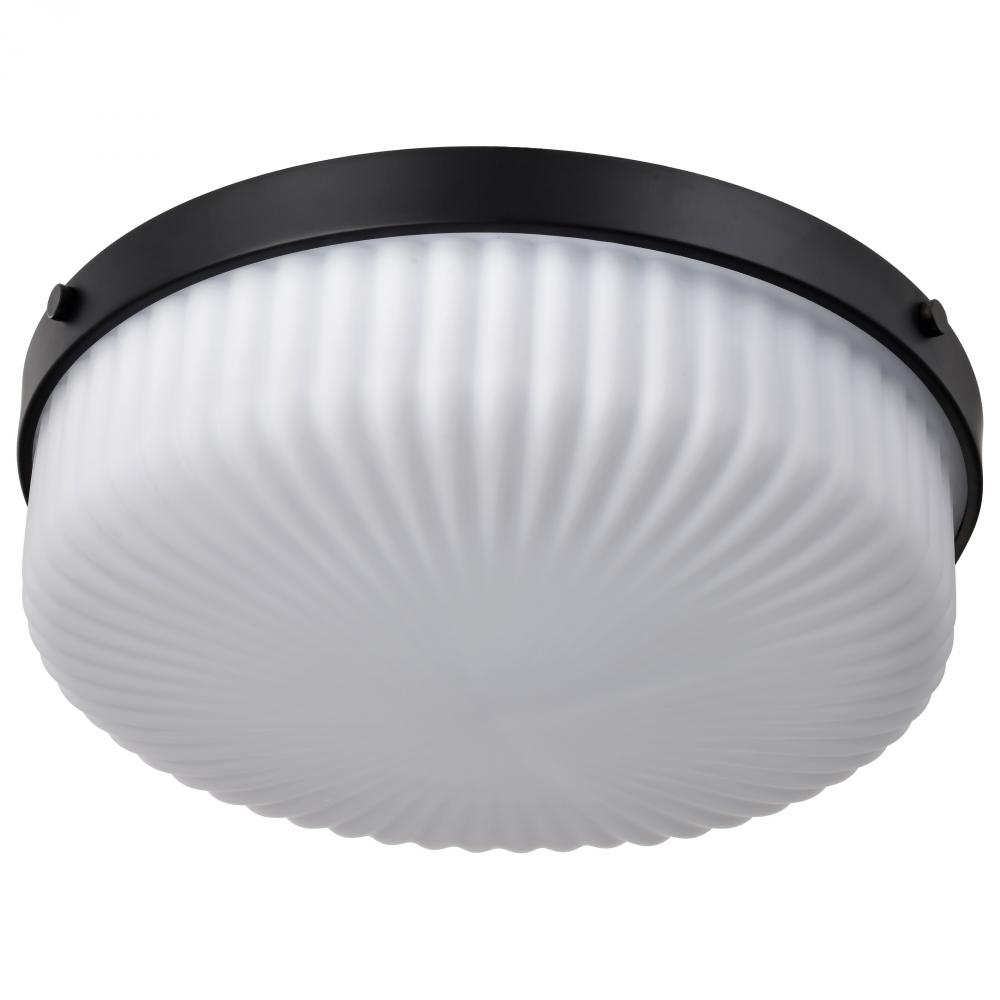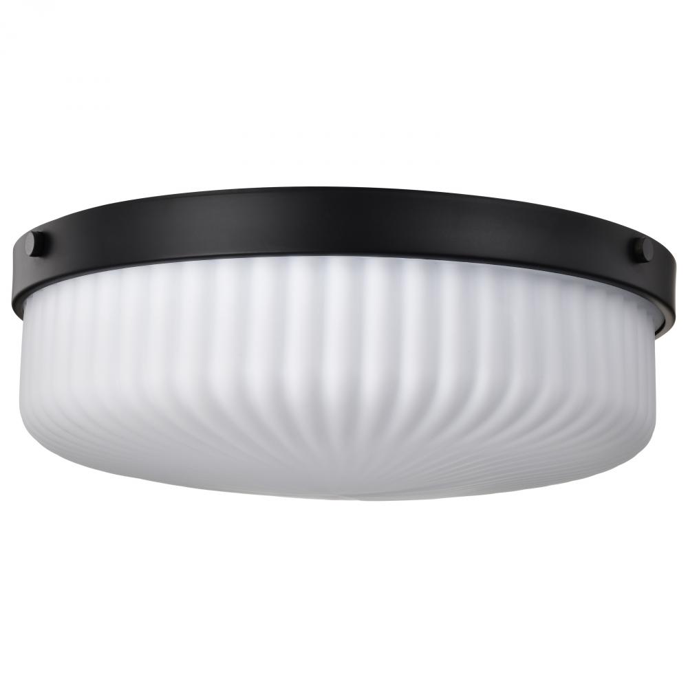 Solara; Flush Mount; Matte Black Finish; Frosted Ribbed Glass