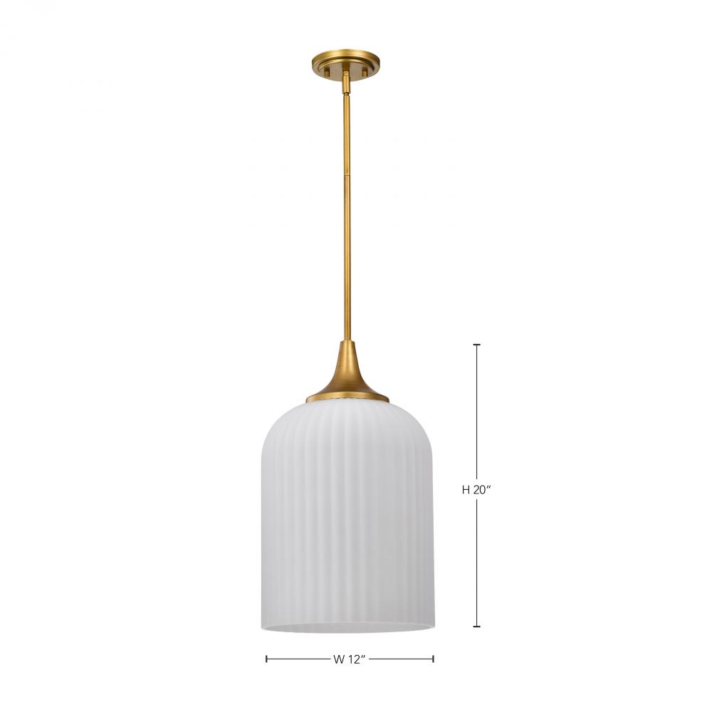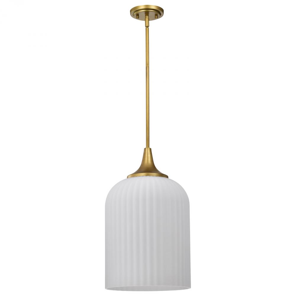 Solara; Pendant; Natural Brass Finish; Frosted Ribbed Glass