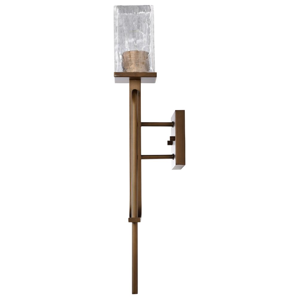 Sophisticated, with clean lines, the Terrace 60-7749 wall sconce is the ideal style for today's home décor. The extended dual-length of the fixture body is accentuated with the natural brass finish and the clear crackle glass adds sparkling illuminati