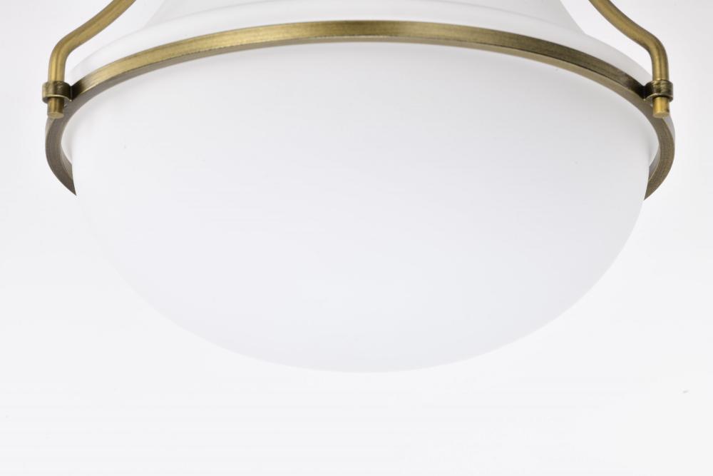 Evoke a sense of tranquility with the Valdora 60-7860 small flush mount, which pays homage to classic, luminous illumination. A schoolhouse-inspired shade floats in a rich finish of natural brass, perfectly complimenting the fixture base and white hue of t