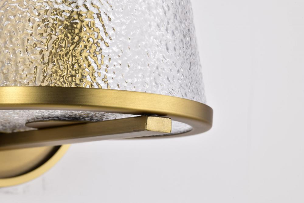Valentine; 2 Light Vanity; Vintage Brass Finish; Hammered Glass