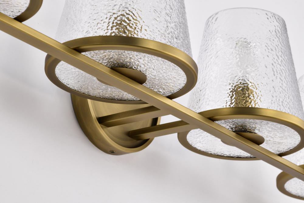 Valentine; 4 Light Vanity; Vintage Brass Finish; Hammered Glass