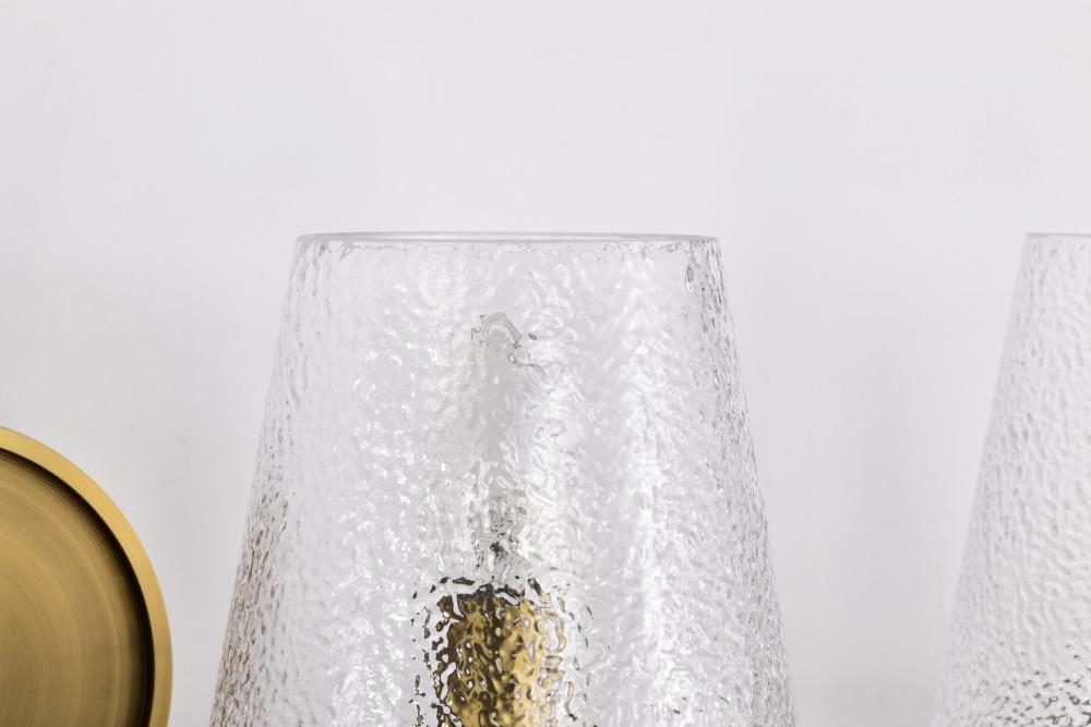 Valentine; 3 Light Vanity; Vintage Brass Finish; Hammered Glass