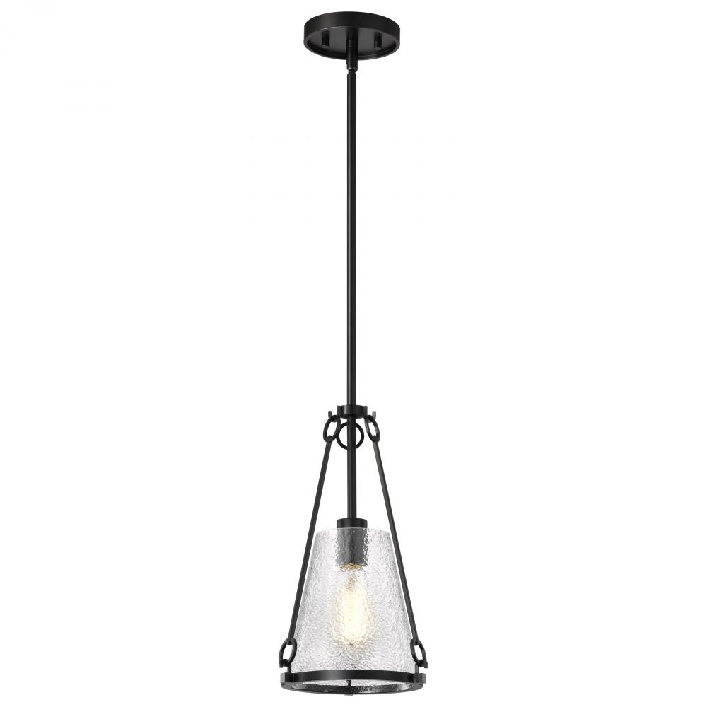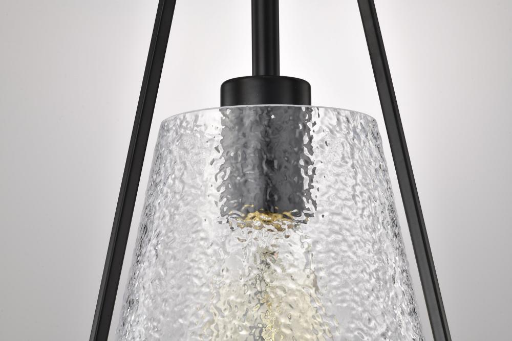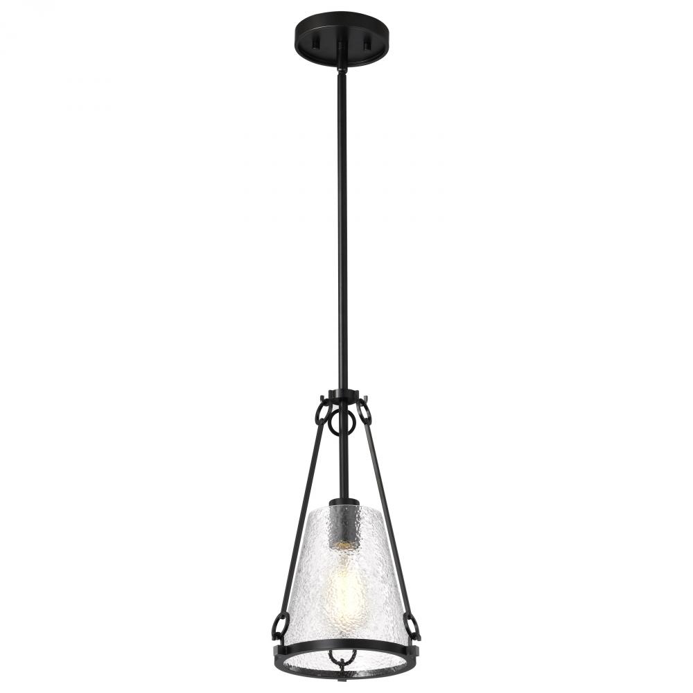 60/8256 - Valentine; Medium Pendant; Black Finish; Hammered Glass