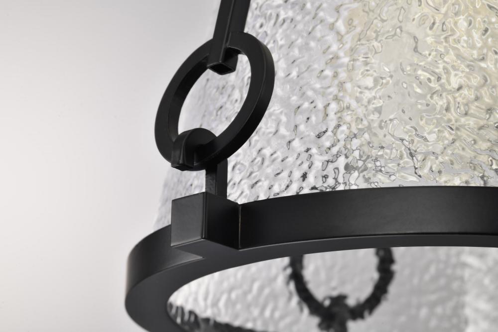 Valentine; Medium Pendant; Black Finish; Hammered Glass