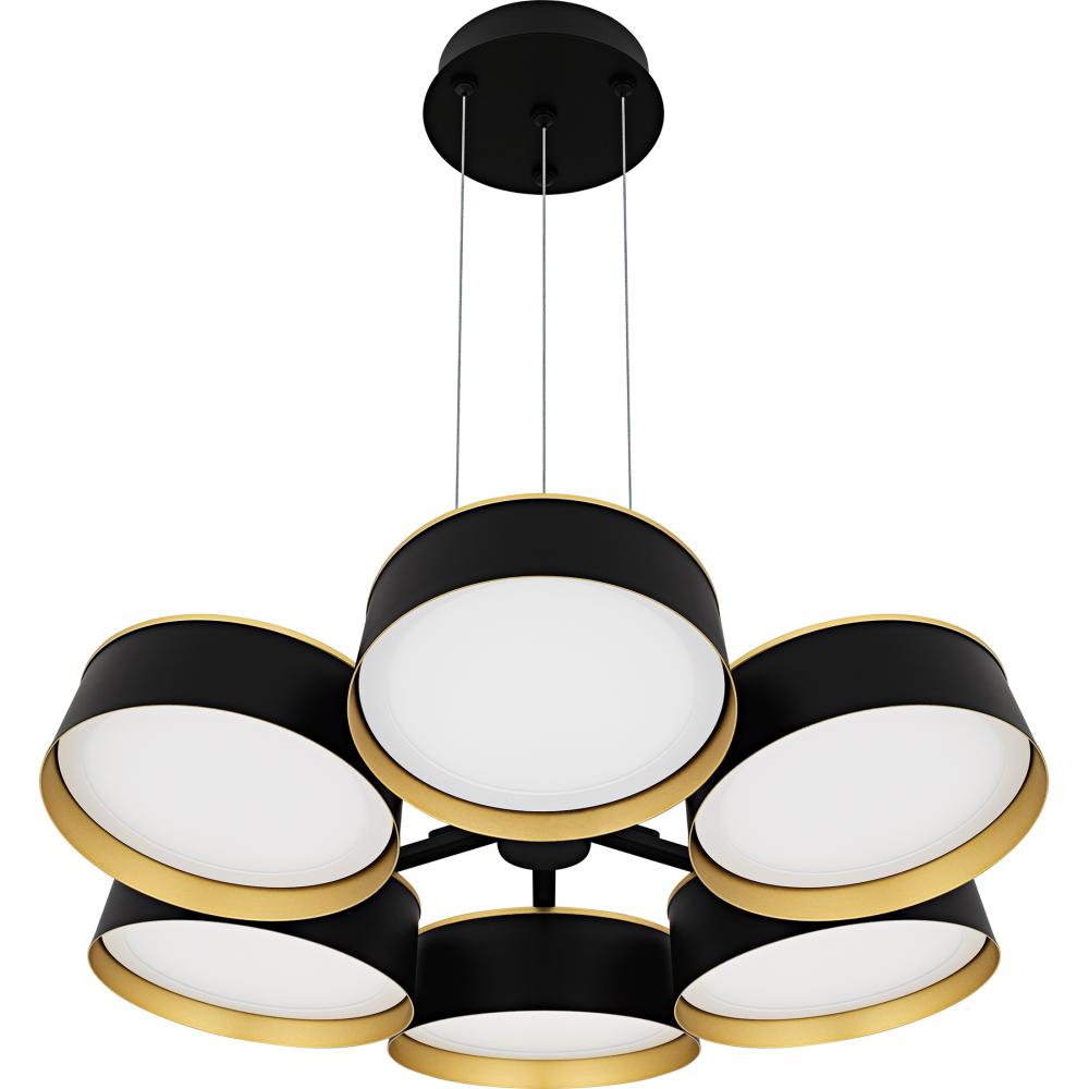 Elevate your space with Byrnes, where modern design meets luxury. The striking combination of matte black and gold creates a sophisticated look in this unique fixture. Featuring a cluster of round metal shades, each equipped with an integrated LED light so
