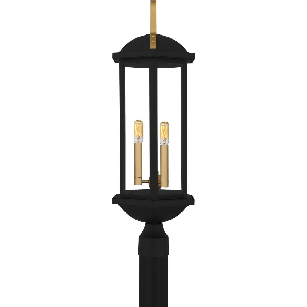Illuminate your homes exterior with the timeless style of Crestfield lanterns. The elongated frame is finished in matte black and accented beautifully with brushed gold for a hint of luster and sophistication. Clear tempered glass panels complete the look
