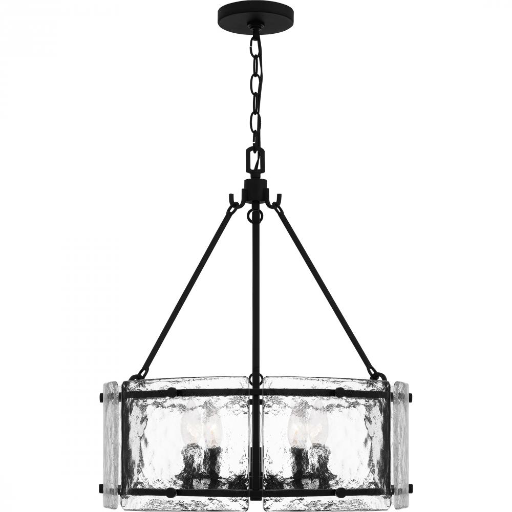 Panels of textured glass pair with an earth black finish to create the Fortress series. Offering simple yet striking design, Fortress is available as a mini pendant, semi-flush mount, pendant, or island light. As a fan light, this design comes in both eart