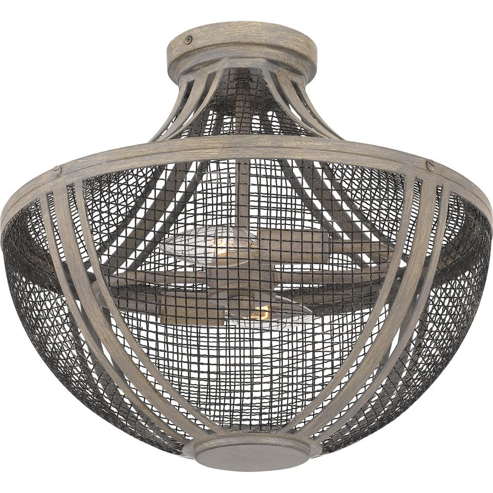 Hallie 2-Light Distressed Grey Wood Semi-Flush Mount Light