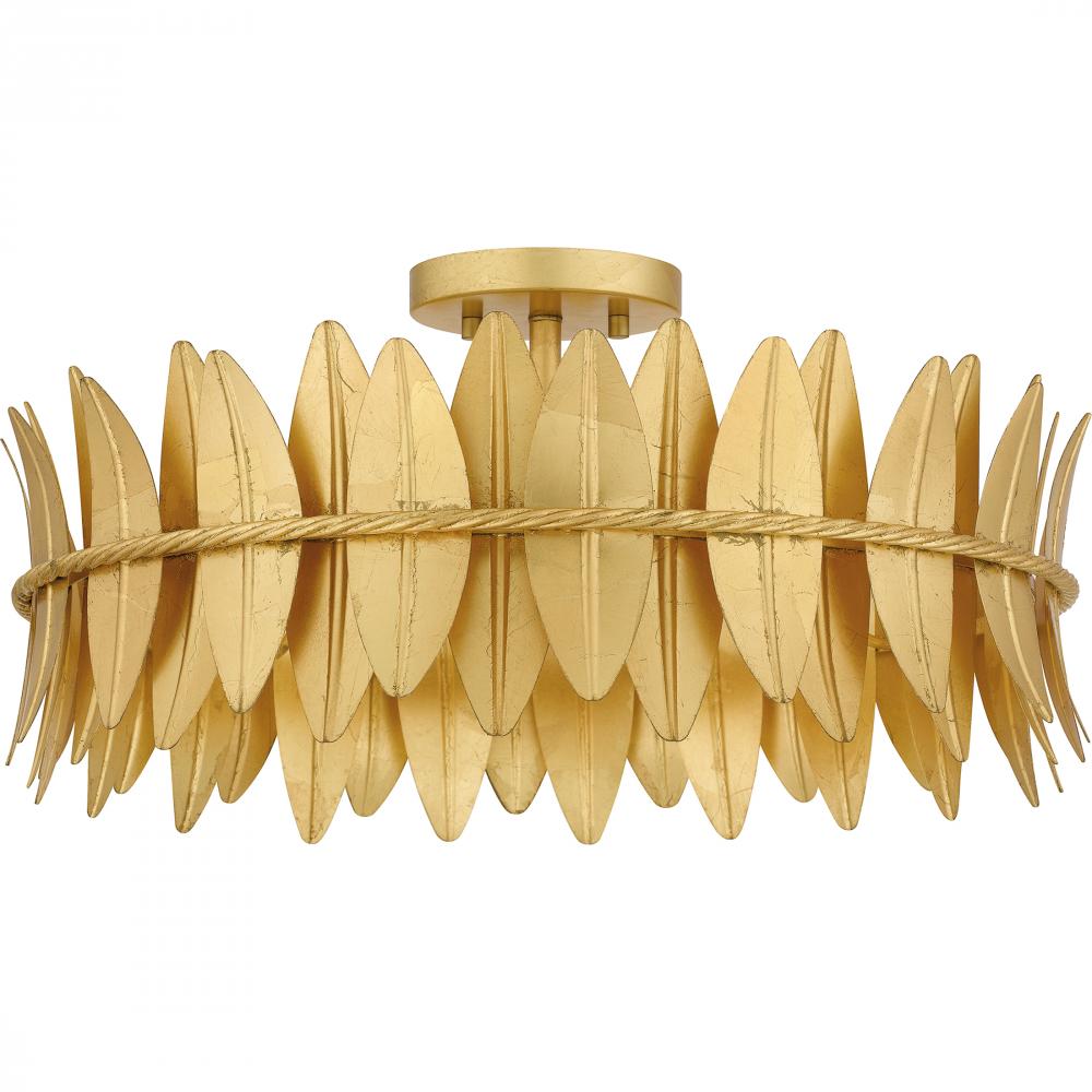 The Liza collection is as modern as it is glamorous. A braided metal rope wraps delicately around varying sizes of leaf for a beautiful effect, all finished in a shimmery gold. Available as a semi-flush mount or pendant light, Liza makes a perfect addition
