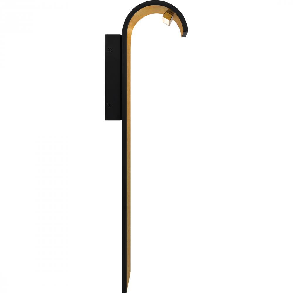 Upgrade your homes exterior with the contemporary style of the Lunar wall lantern collection. The open silhouette is finished in matte black and accented by a gold interior, which shines brilliantly under the integrated LED light source. With its striking