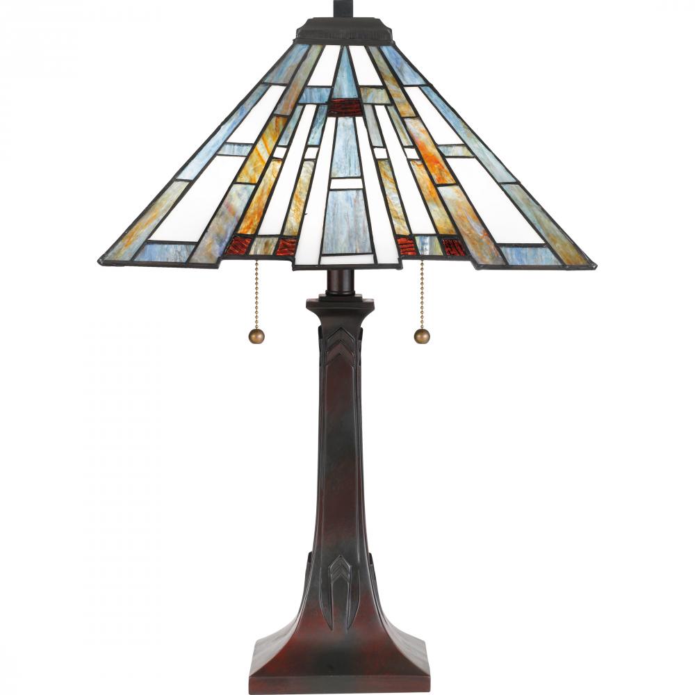 The Maybeck is a chic interpretation of timeless Tiffany style. The classic tapered silhouette features a staggered edge that emphasizes the intricate details of the Tiffany glass. Finished in valiant bronze, this stately collection is sure to add warmth a