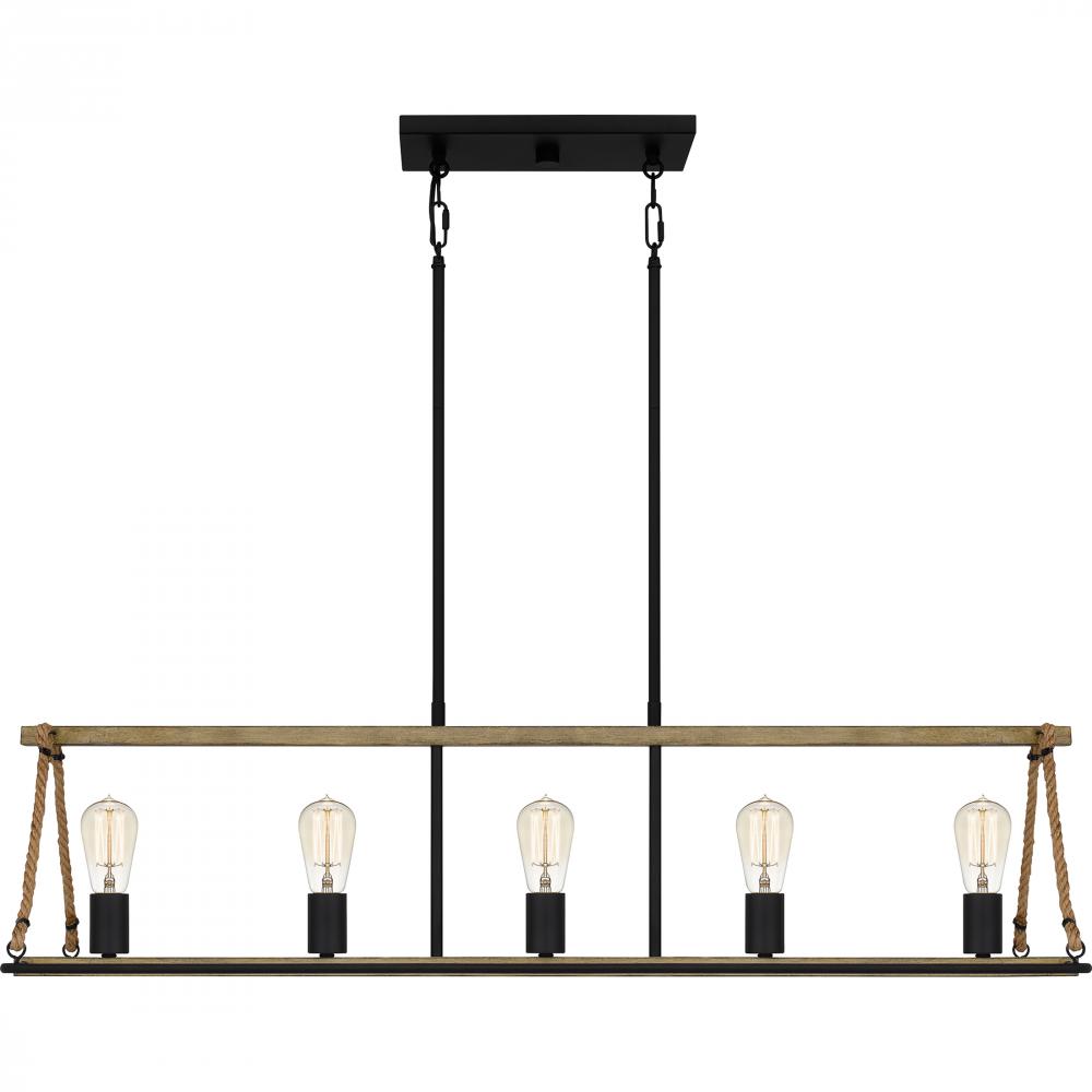 With an open framework and weathered styling, Oak Park offers the perfect complement to coastal design. As part of the Quoizel Naturals collection, this linear chandelier features rope accents for an added touch of nautical whimsy. A matte black finish com