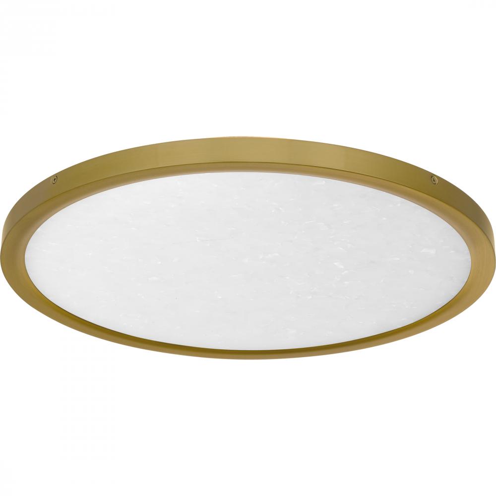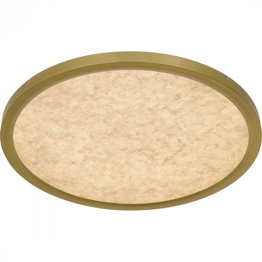 The Outskirts flush mount is a versatile lighting fixture, ideal for a range of room applications. Available in multiple sizes, you can select the brushed gold finish with a white alabaster acrylic shade for a refined look, or the earth black finish with a
