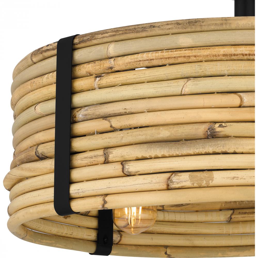 As part of the Quoizel Naturals series, the Lachlan ceiling fan light exemplifies modern bohemian style with a textured rattan shade. A matte black finish completes the look, adding a cool contrast to the natural shade. With a reversible three-speed motor