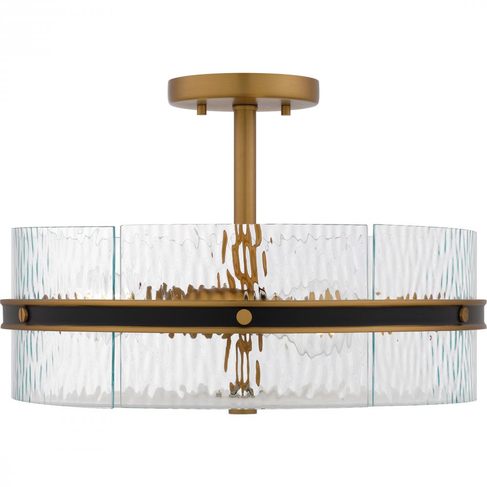 Enhance your space with the Reagan collection, offering both semi-flush mount and pendant light options that bring industrial charm and sophistication to any room. Reagan features a striking brushed weathered brass finish accented with matte black details,