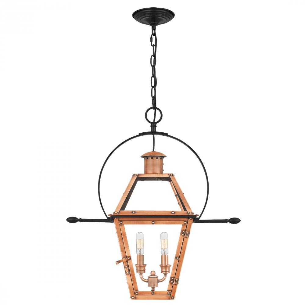 Rue de Royal is all electric while maintaining that coveted, historic gas-flame look found throughout the Charleston Historic District. This yoke mount lantern style is made from hand-riveted copper and brass. Choose the warm and bright patina of copper, o