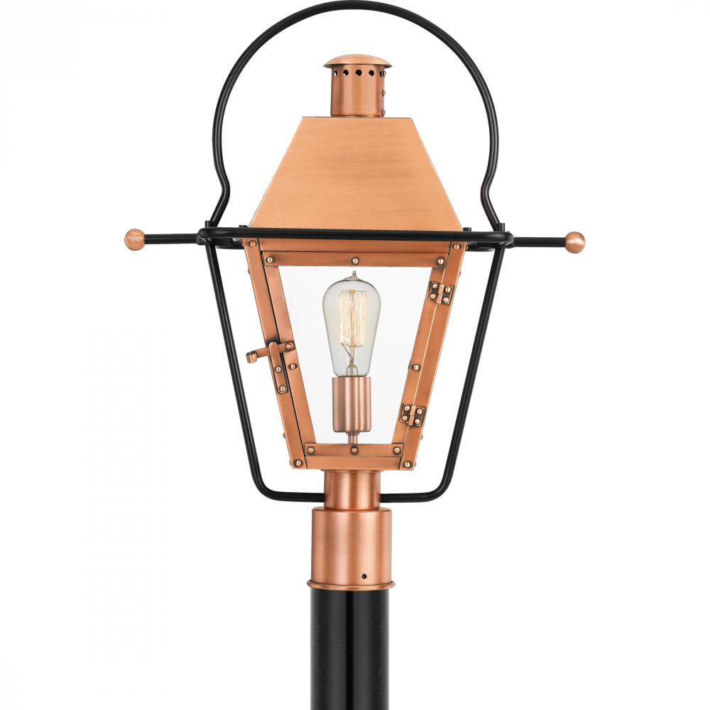 From the Charleston Copper & Brass Lantern Collection, the Rue De Royal offers the historic look of gas lighting without the hassle of a propane feed. It is all electric and features a hand-riveted solid copper or brass frame, combining the romantic charm