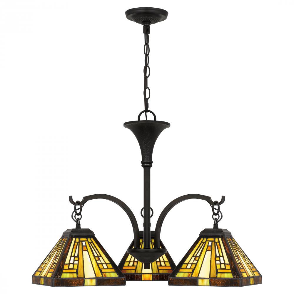 This handcrafted Tiffany style collection illuminates your home with warm shades of amber bisque and earthy green arranged in a clean and simple geometric pattern reminiscent of the works of Frank Lloyd Wright. The sturdy base complements the Arts & Cra