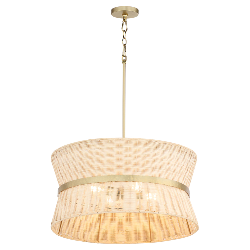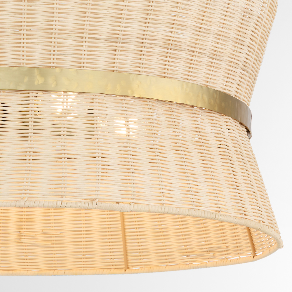 Fairview adds warmth, comfort, and security to any space. With its graceful rattan shade and hammered metal center band, this series captures the essence of natural beauty, reimagined for modern spaces. This versatile collection, available in brushed brass or matte black, includes sconces, wall mounts, and pendants, making it an excellent choice for both intimate and larger spaces alike.