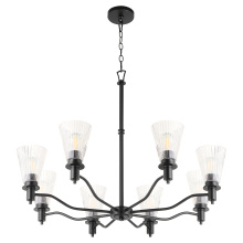 Lawton is a playful transitional series featuring pleated conical glass, ramped arms, and contemporary finishing. Early American and European styles inspired the clean bobeche, breaks, and steps in the details. Available in matte black or brushed brass, this chandelier offers versatility with 5 or 8 light options. Whether placed in living rooms, kitchens, or entryways, Lawton adds a welcoming touch to any décor.