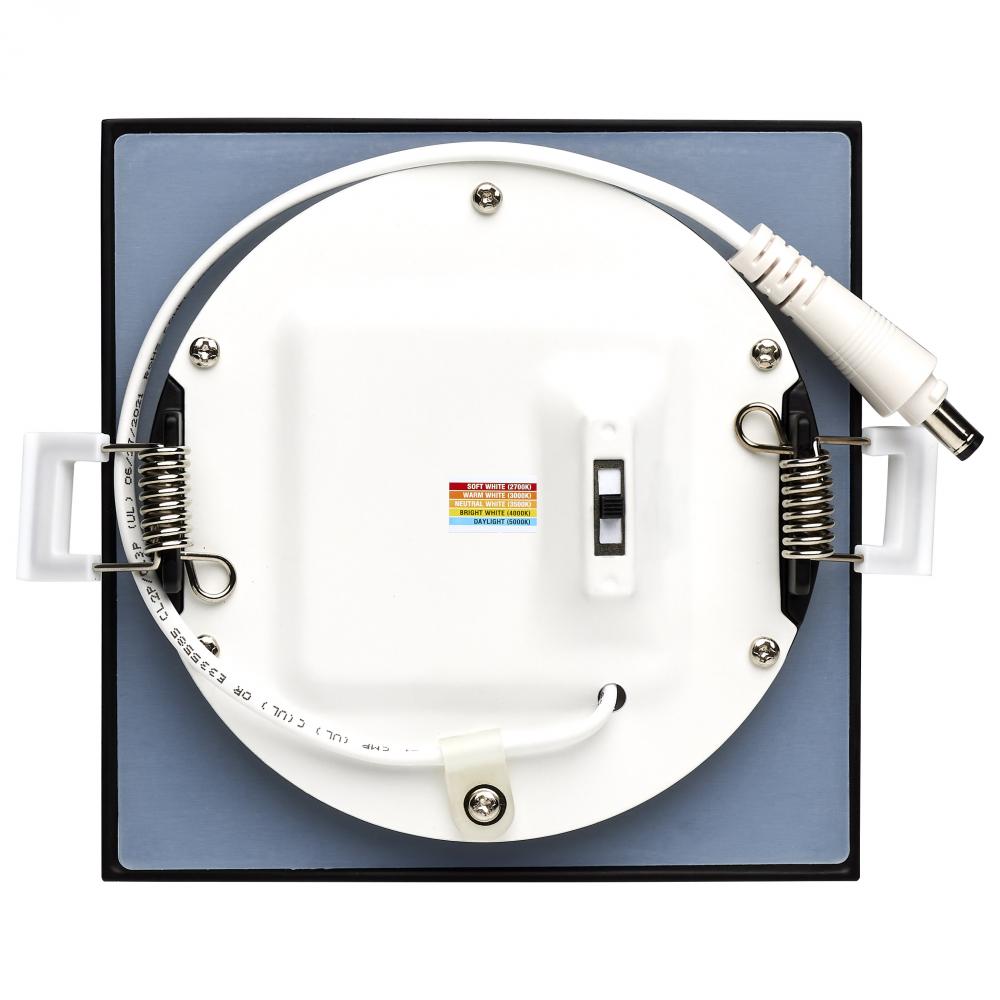 10 Watt LED Direct Wire Downlight; 4-Inch; CCT Selectable; Square; Remote Driver; Black Finish