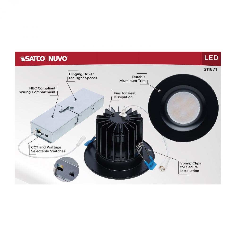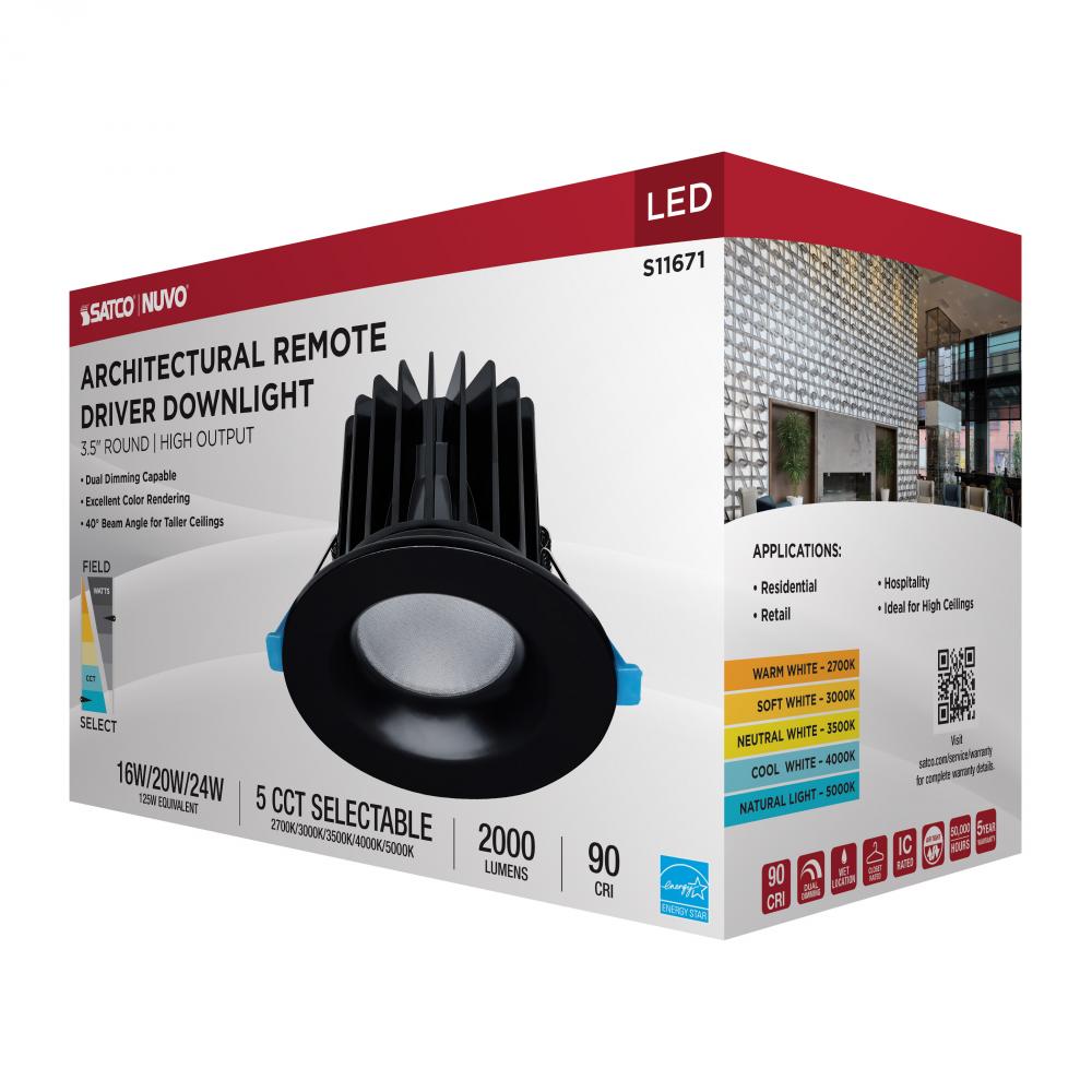 16/20/24 Watt LED Remote Driver Downlight; 27K/30K/35K/40K/50K CCT; Field Selectable; Round; Black
