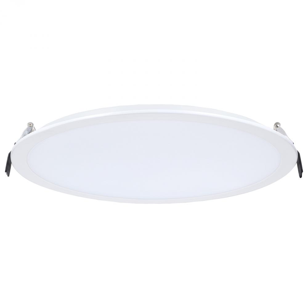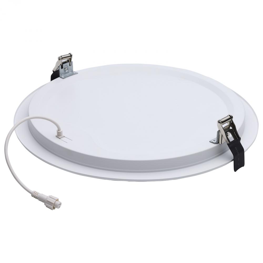 38 Watt; 12 Inch LED Direct Wire Downlight; Remote Driver; CCT Selectable; Dual Dimming; Flat Face; Round; White Finish