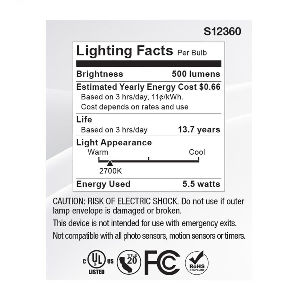 SATCO S12360 MR16 lamps provide high color accuracy with a 90 CRI and are dimmable for customizable lighting. These lamps are also damp location rated, and suitable for use in enclosed fixtures. Perfect for a variety of residential and commercial applicati
