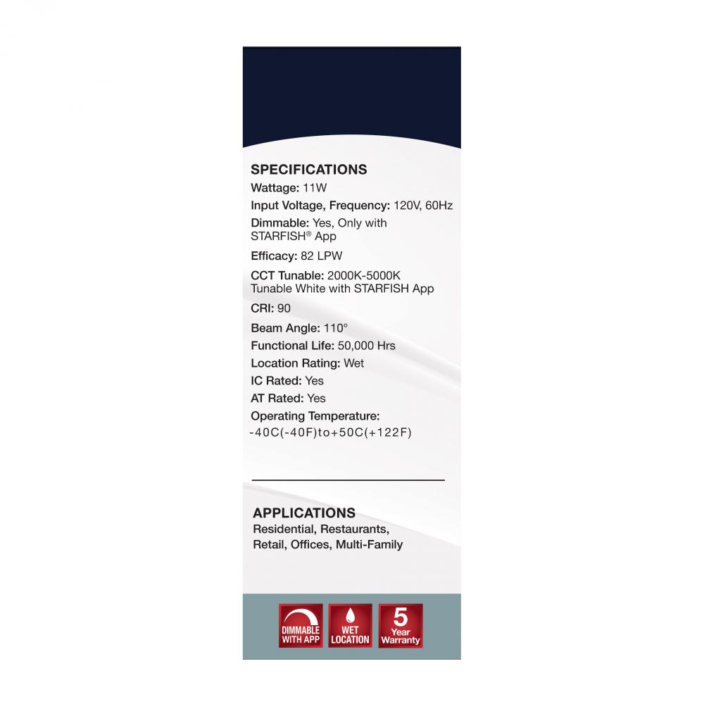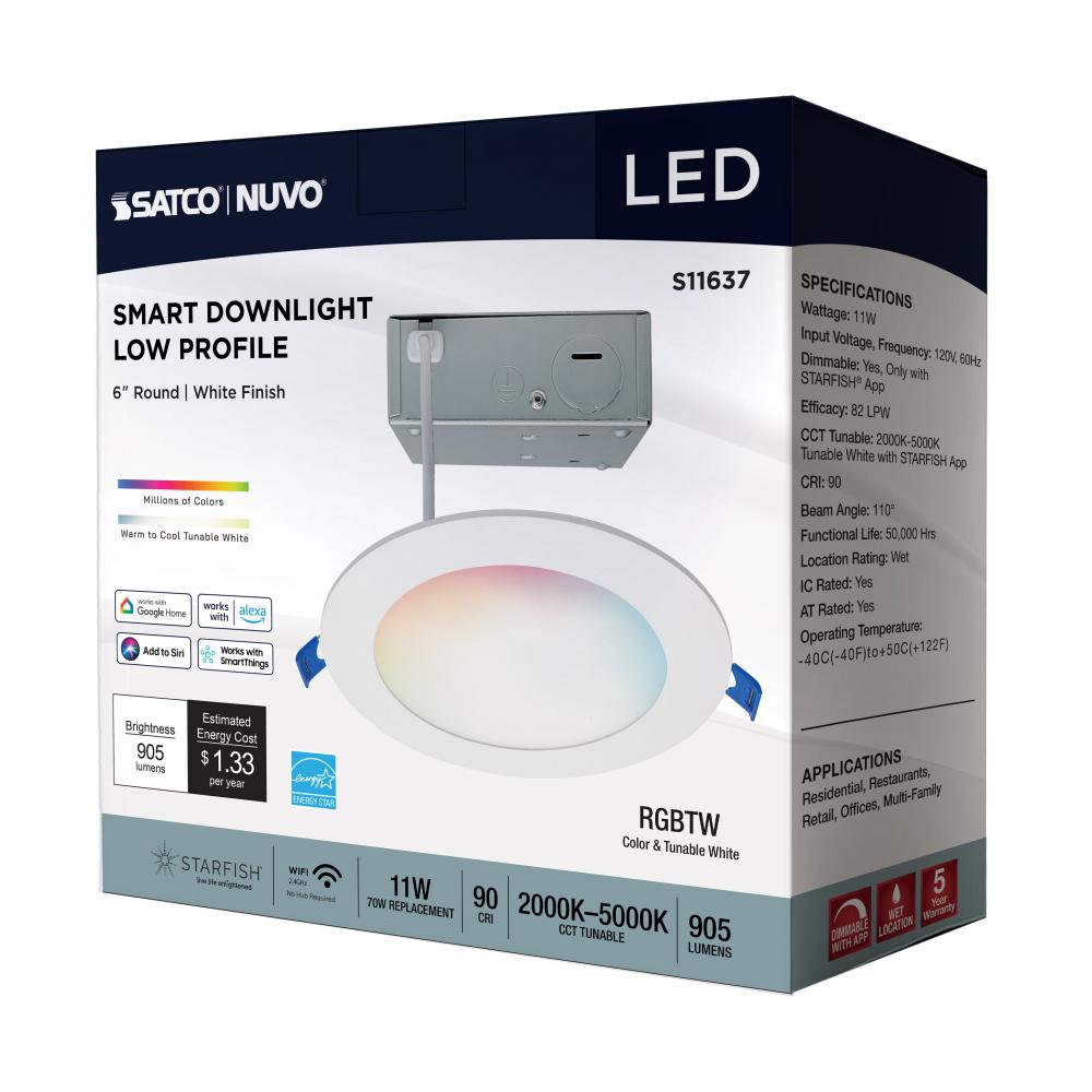 SATCO NUVO'S S11637 6-inchLED Slimfit Downlights with STARFISH technology are the ultimate choice for smart lighting and ambiance control. Download the STARFISH app to customize any tunable white color temperatures from 2000K warm white light to 5000K