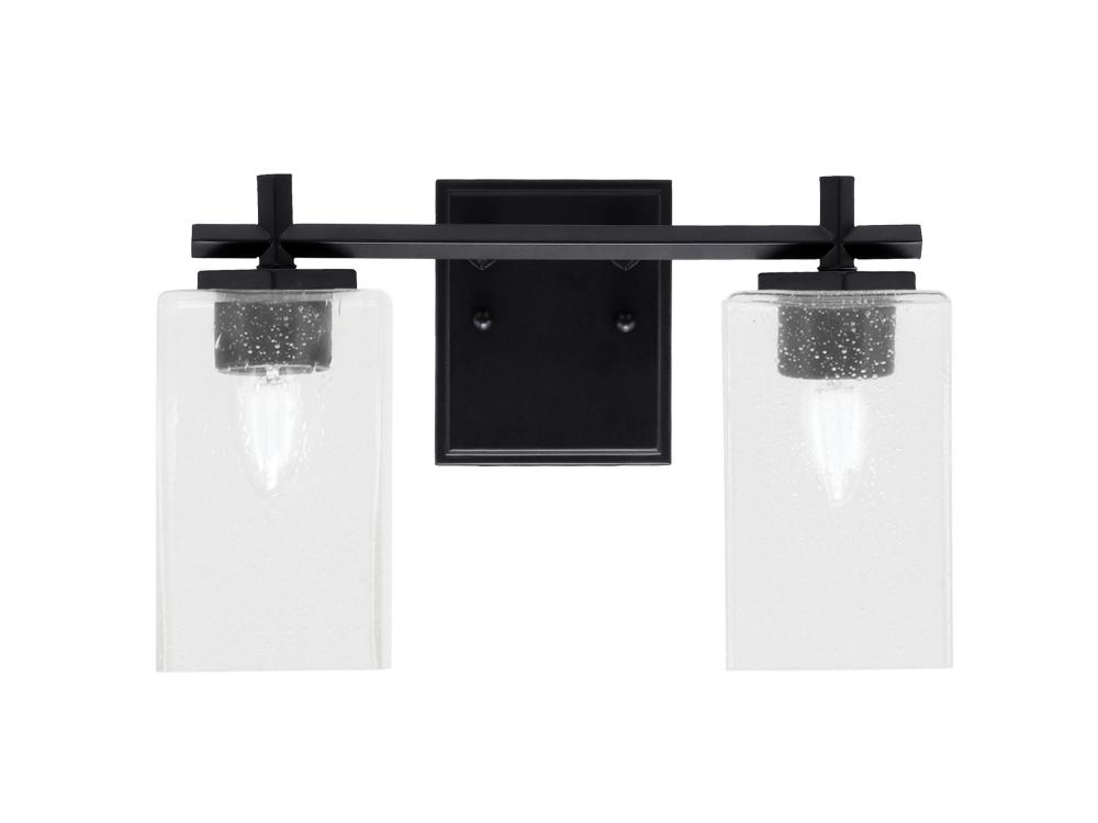 Franklin 2 Light Bath Bar Shown In Matte Black Finish With 4 Square Clear Bubble Glass