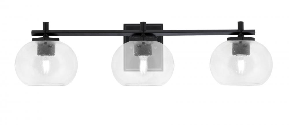 Franklin 3 Light Bath Bar Shown In Matte Black Finish With 7 Clear Bubble Glass