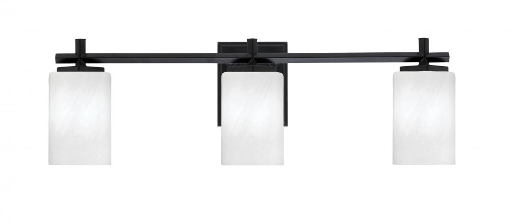 Franklin 3 Light Bath Bar Shown In Matte Black Finish With 4 White Marble Glass