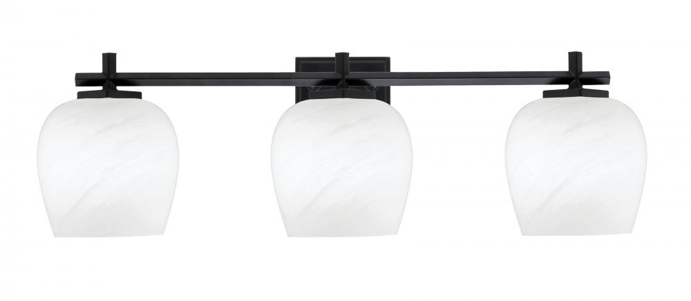 Franklin 3 Light Bath Bar Shown In Matte Black Finish With 6 White Marble Glass