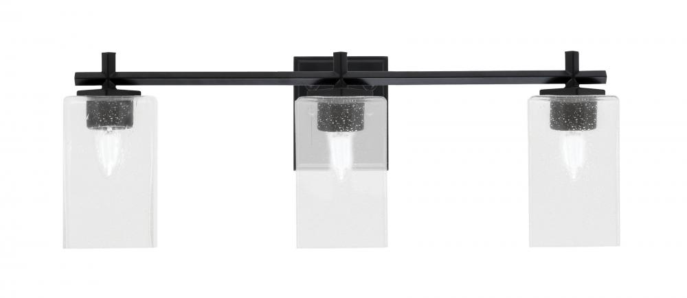 Franklin 3 Light Bath Bar Shown In Matte Black Finish With 4 Square Clear Bubble Glass
