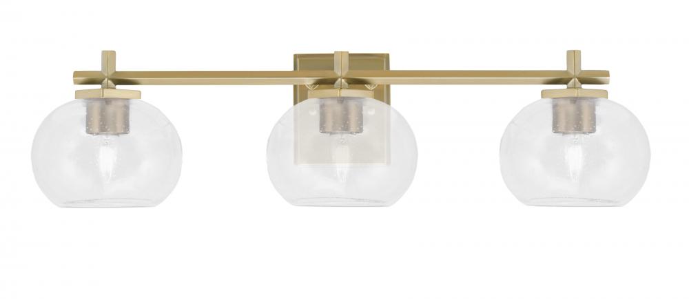 Franklin 3 Light Bath Bar Shown In New Age Brass Finish With 7 Clear Bubble Glass