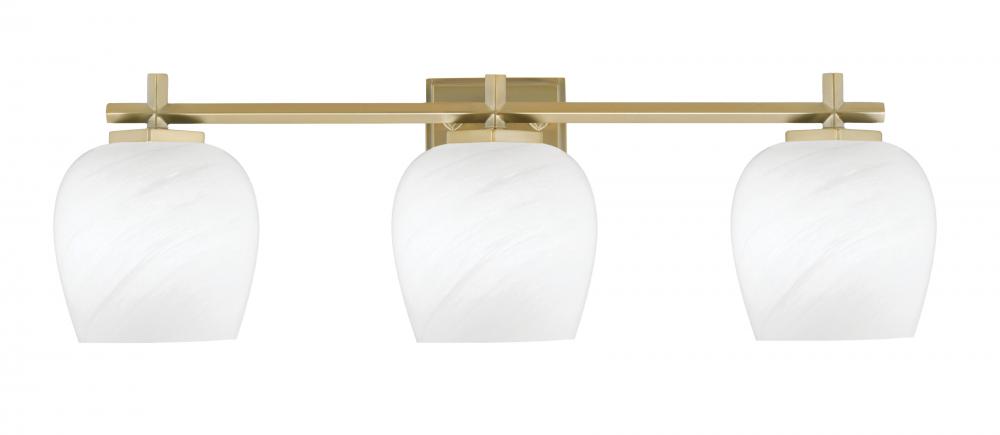 Franklin 3 Light Bath Bar Shown In New Age Brass Finish With 6 White Marble Glass