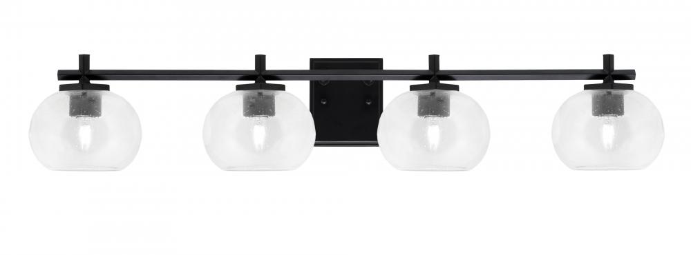 Franklin 4 Light Bath Bar Shown In Matte Black Finish With 7 Clear Bubble Glass