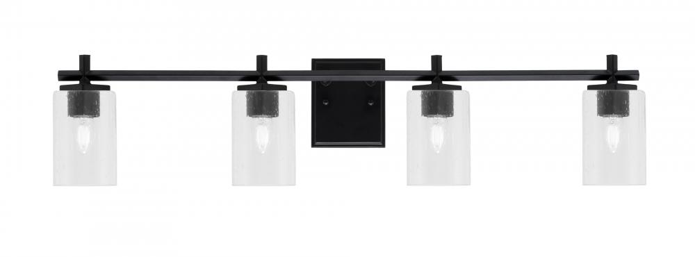 Franklin 4 Light Bath Bar Shown In Matte Black Finish With 4 Clear Bubble Glass