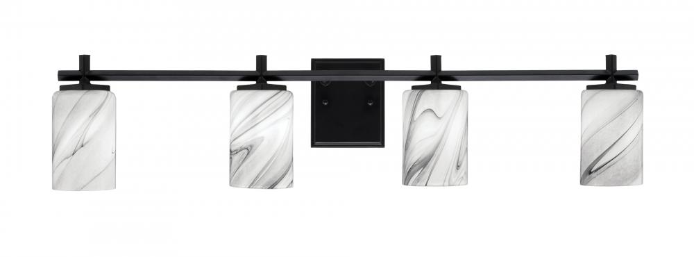 Franklin 4 Light Bath Bar Shown In Matte Black Finish With 4 Onyx Swirl Glass