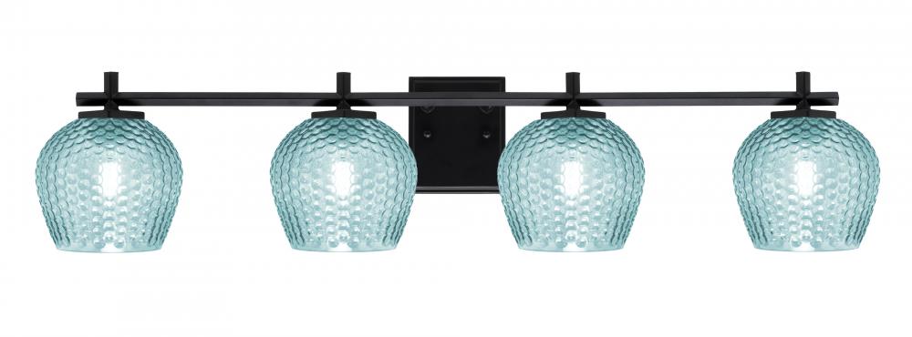 Franklin 4 Light Bath Bar Shown In Matte Black Finish With 6 Turquoise Textured Glass