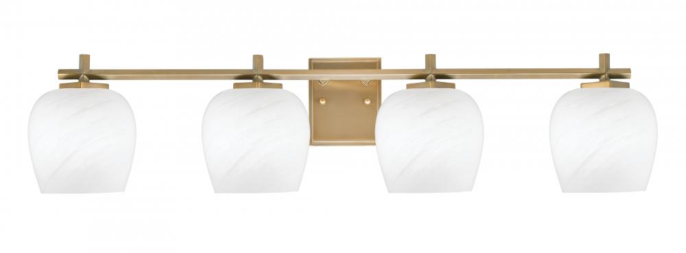 Franklin 4 Light Bath Bar Shown In New Age Brass Finish With 6 White Marble Glass