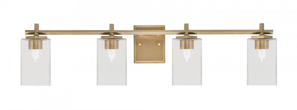 Franklin 4 Light Bath Bar Shown In New Age Brass Finish With 4 Square Clear Bubble Glass