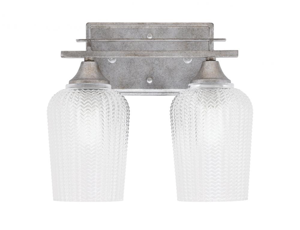 Toltec Lighting 132-AS-4250 Uptowne 2 Light Bath Bar, Aged Silver Finish, 5 Clear Textured Glass