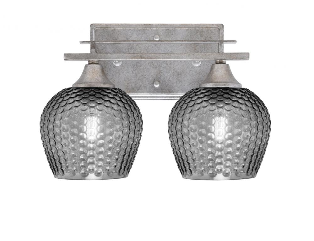 Toltec Lighting 132-AS-4602 Uptowne 2 Light Bath Bar, Aged Silver Finish, 6 Smoke Textured Glass