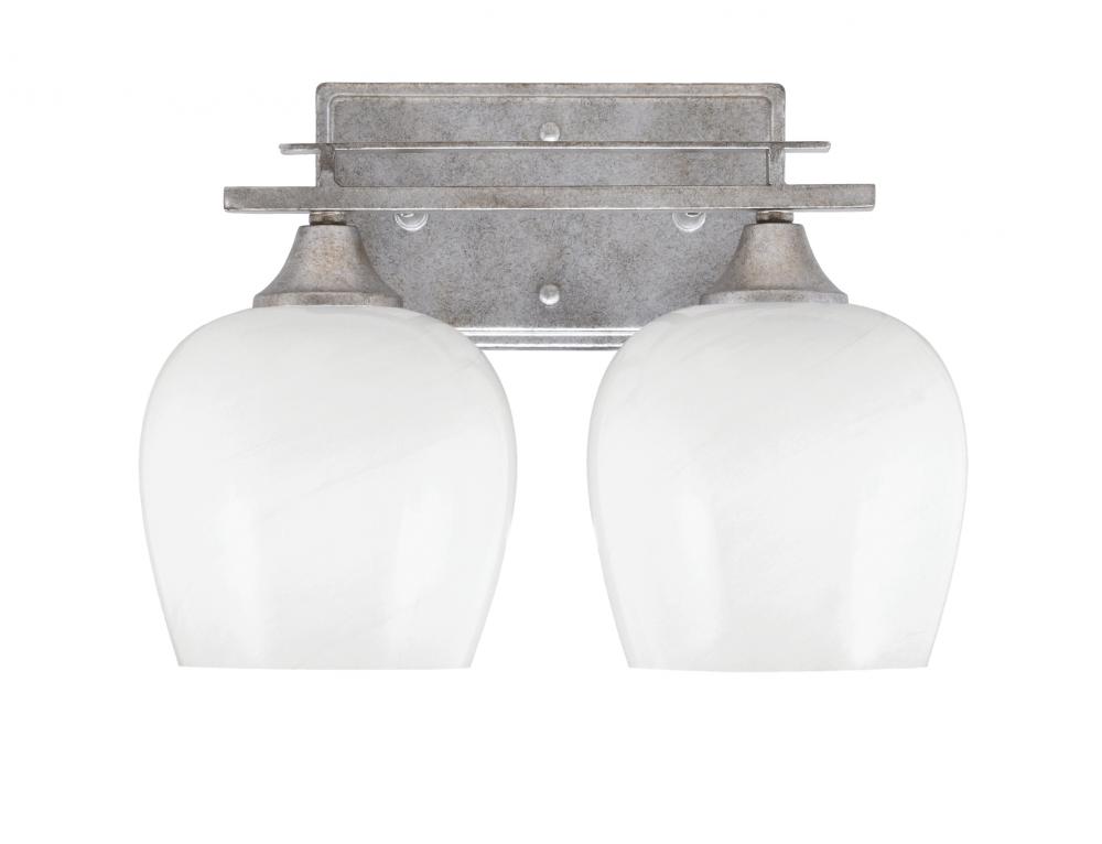 Toltec Lighting 132-AS-4811 Uptowne 2 Light Bath Bar, Aged Silver Finish, 6 White Marble Glass