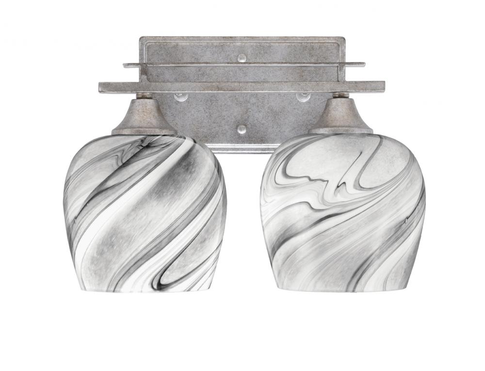 Toltec Lighting 132-AS-4819 Uptowne 2 Light Bath Bar, Aged Silver Finish, 6 Onyx Swirl Glass
