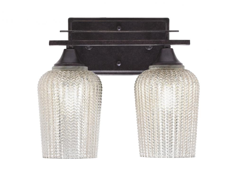 Toltec Lighting 132-DG-4253 Uptowne 2 Light Bath Bar, Dark Granite Finish, 5 Silver Textured Glass